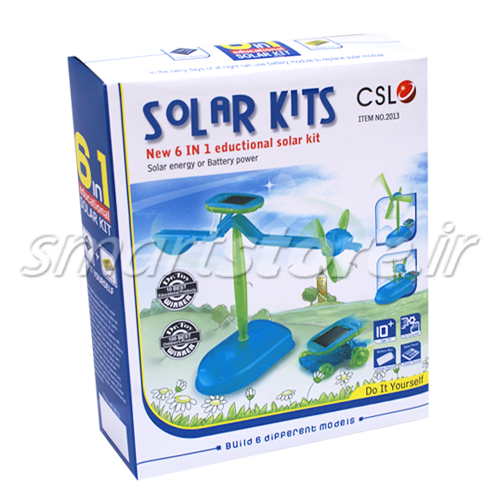 پکیج 6 کاره خورشیدی وسیله ای سرگرم کننده و آموزشی است که با قطعات داخل آن می توانید 6 وسیله جدید که با انرژی خورشید کار می کند بسازید و ساعت ها برای کودکان و حتی بزرگسالان ایجاد سرگرمی کنید. ساخت 6 مدل متفاوت از قبیل اتومبیل، قایق، آسیاب، هواپیما و ... که منبع تغذیه آن سلول های خورشیدی می باشند.